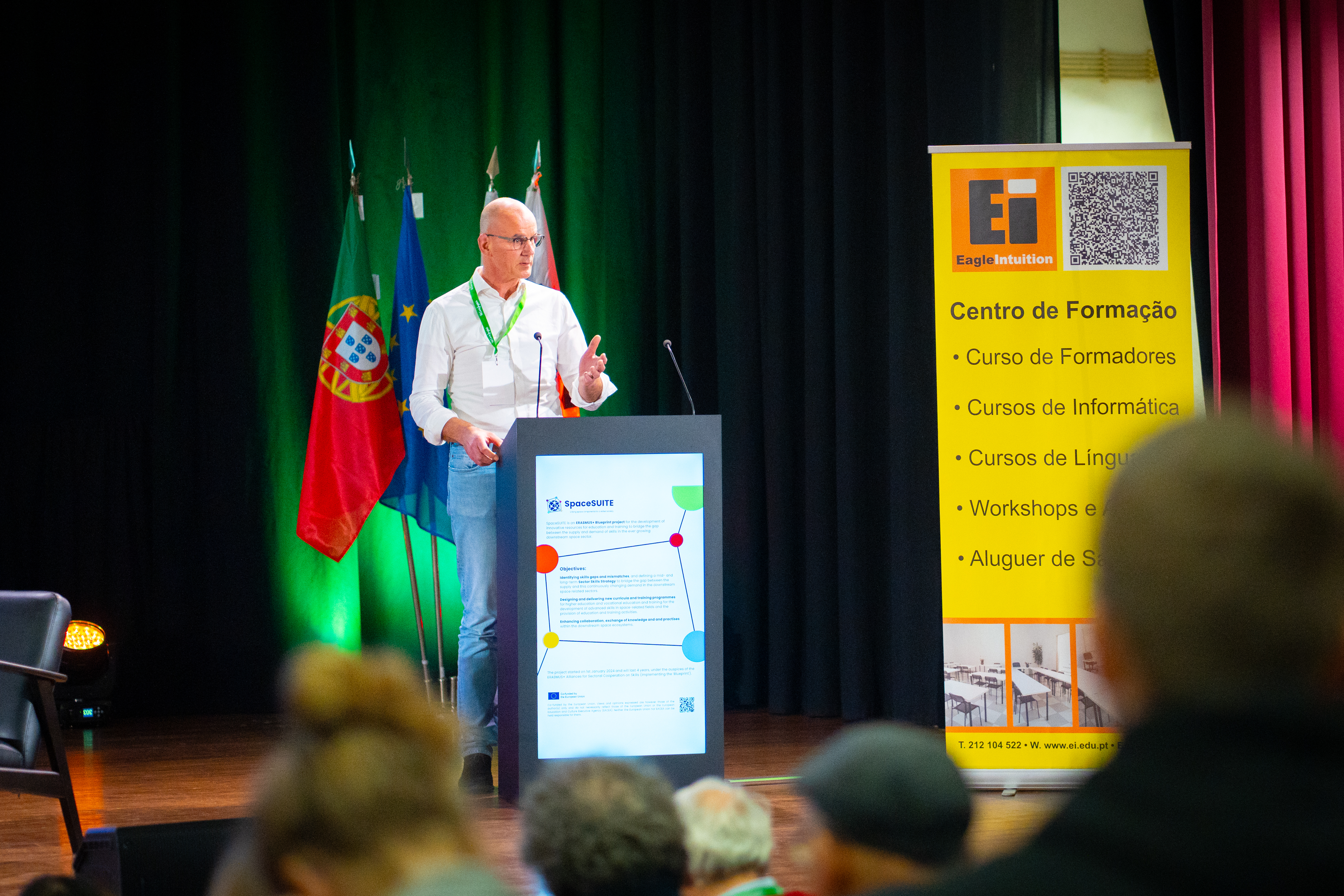 Sob o mote “Perfis Ocupacionais Essenciais no Espaço: O Que Há de Novo e o Que Vem A Seguir?”, o debate esclarecedor — entre Tomáš Halaška, Marta Gonçalves, Milva Carbonaro, Danny Vandenbroucke, Bruno Guerreiro, Luísa Almeida, Sérgio da Cunha Oliveira, Fátima Pinto, Rui Santos, Jorge Rocha, Miriam Rosa e Miguel Antunes — fomentou o sentido de comunidade e a responsabilidade coletiva — sobre o caminho que a Europa pretende traçar na formação de competências emergentes —, atravessando perspetivas, metodologias e realidades.